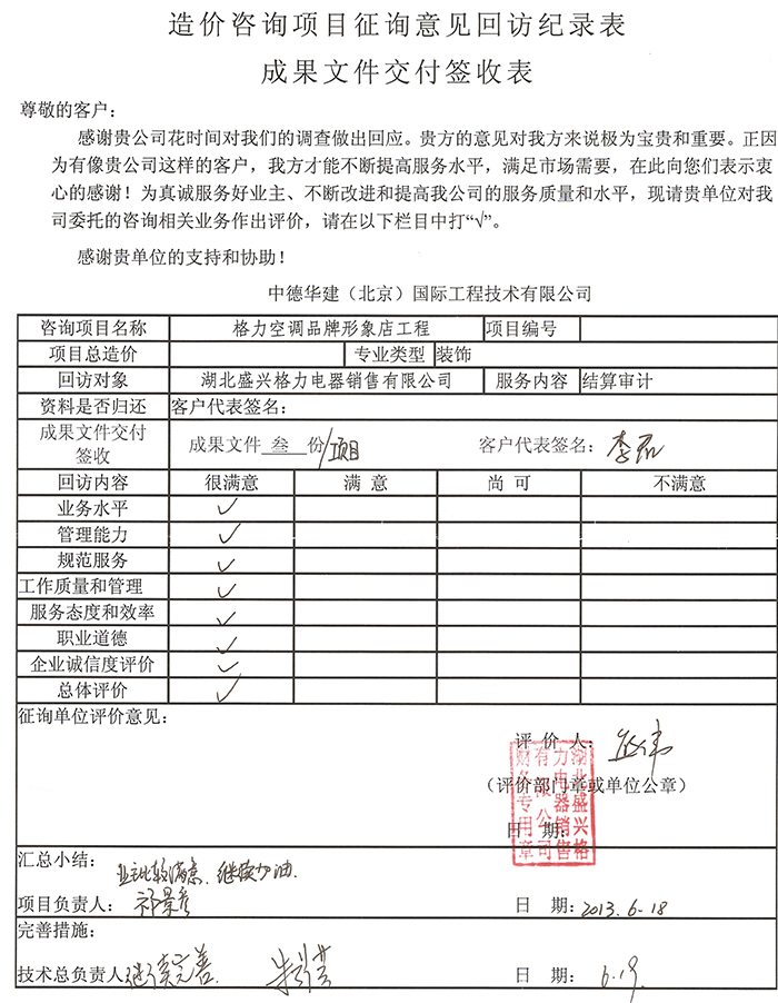 格力空调品牌形象店项目业主评价