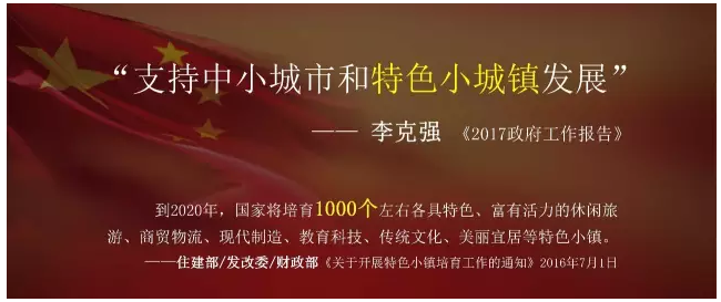 2016年7月,住建部、发改委和财政部联合发布《关于开展特色小镇培育工作的通知》,提出“到2020年,国家将培育1000个左右各具特色、富有活力的休闲旅游、商贸物流、现代制造、教育科技、传统文化、美丽宜居等特色小镇。”在今年刚结束的两会,特色小镇也被写进政府工作报告。